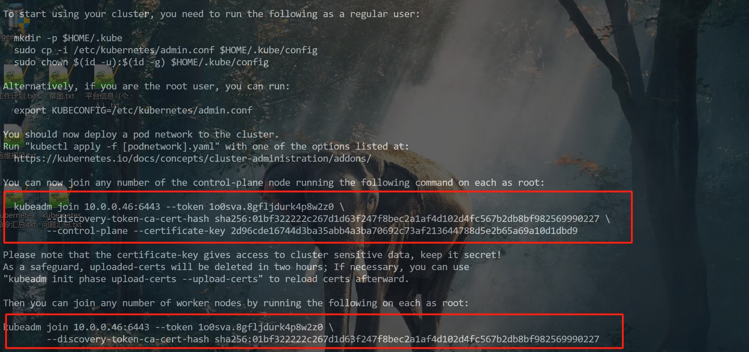 生成的加入集群命令上面的是加入多master的,下面的是加入node