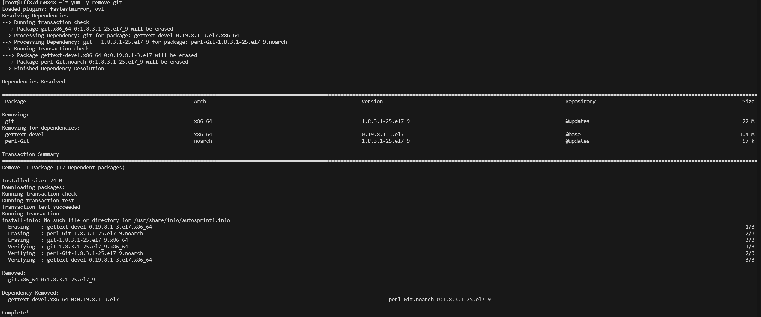 yum -y remove git