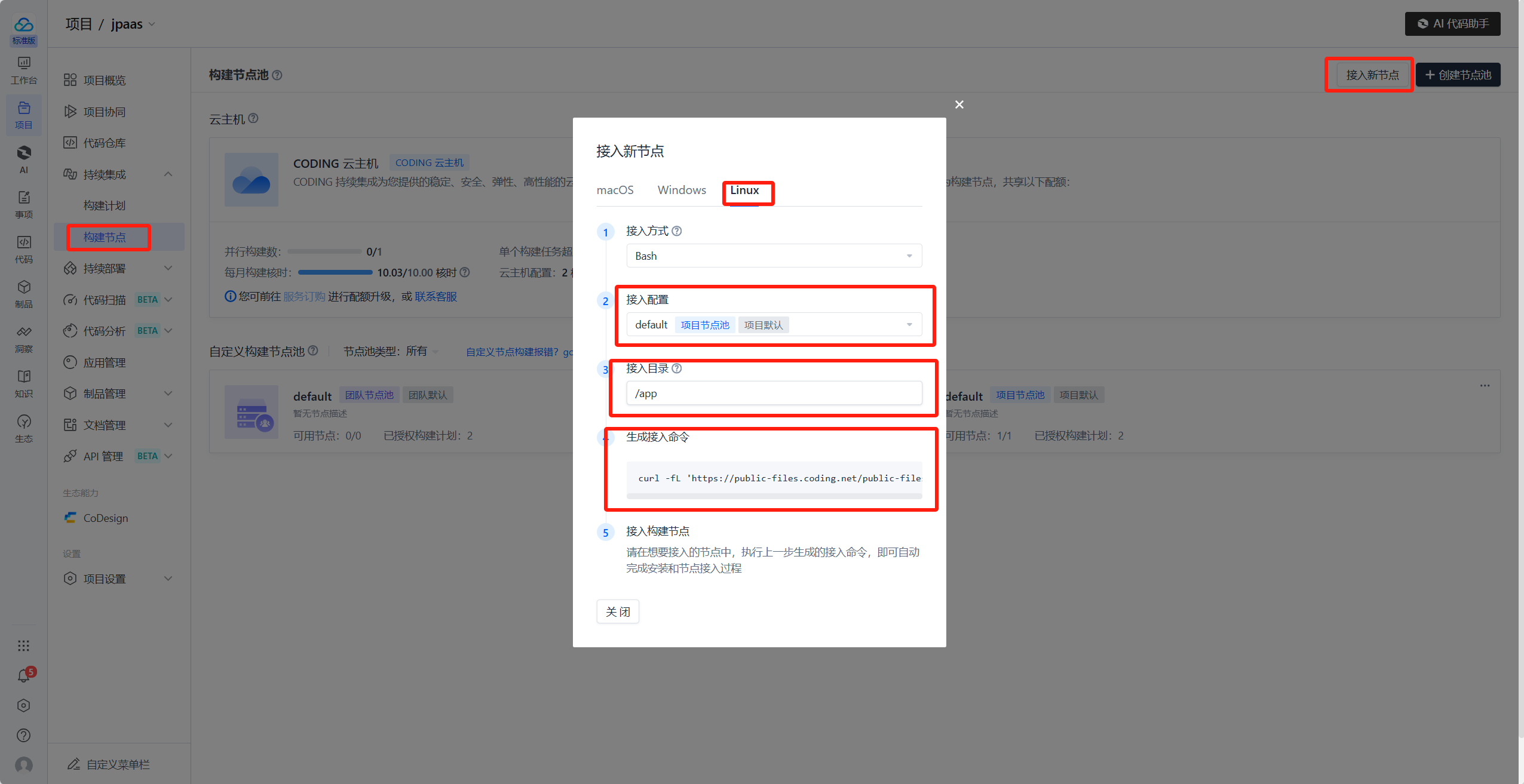 新建腾讯云coding构建机