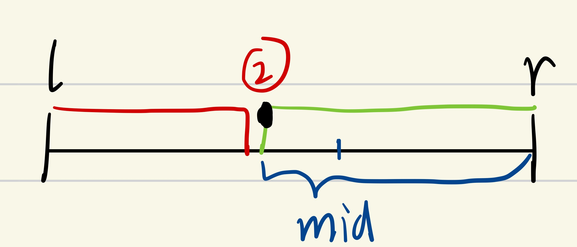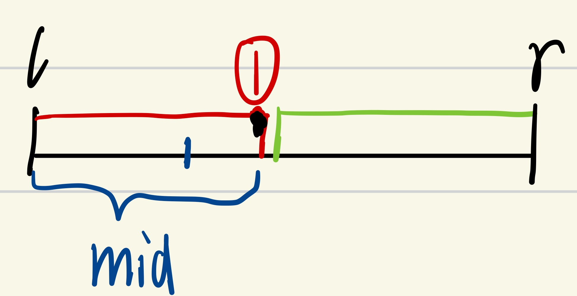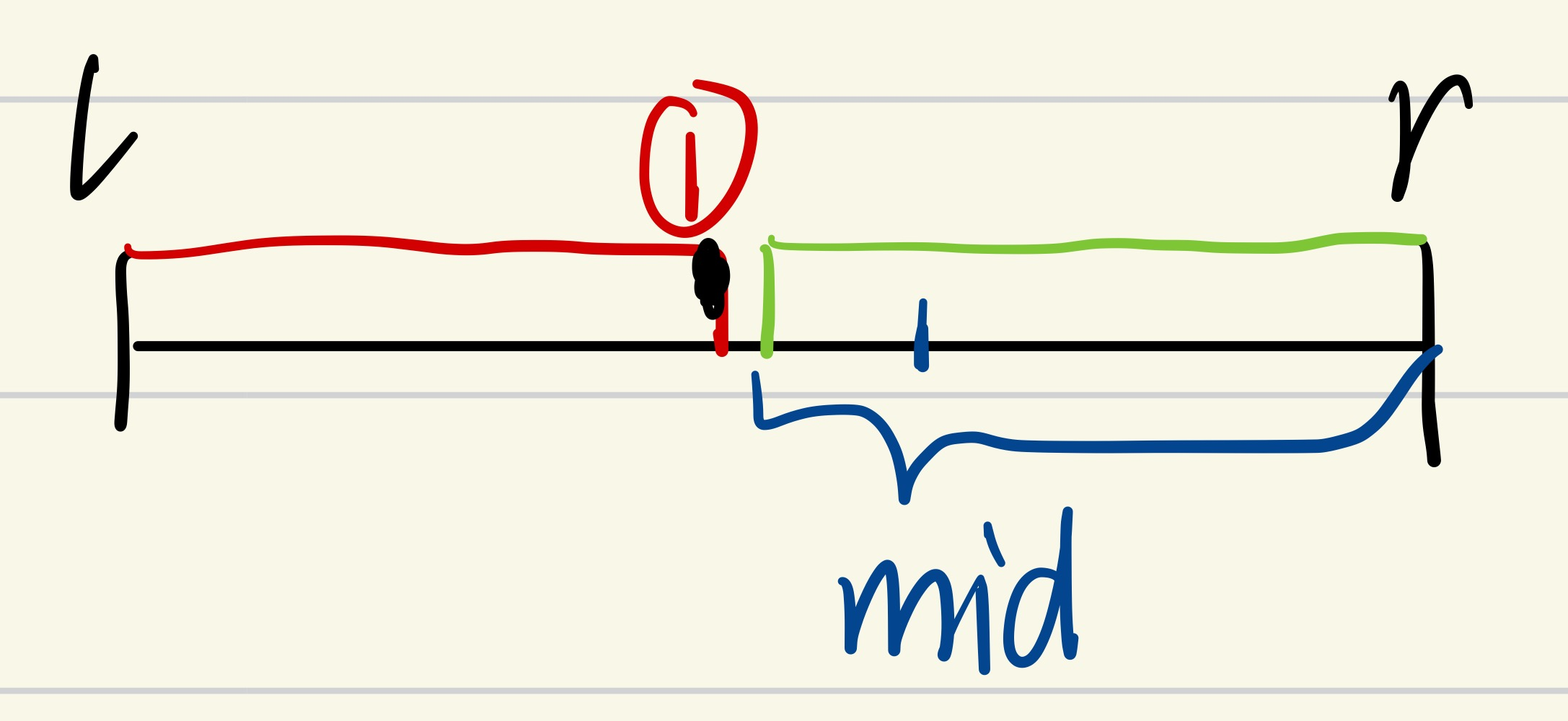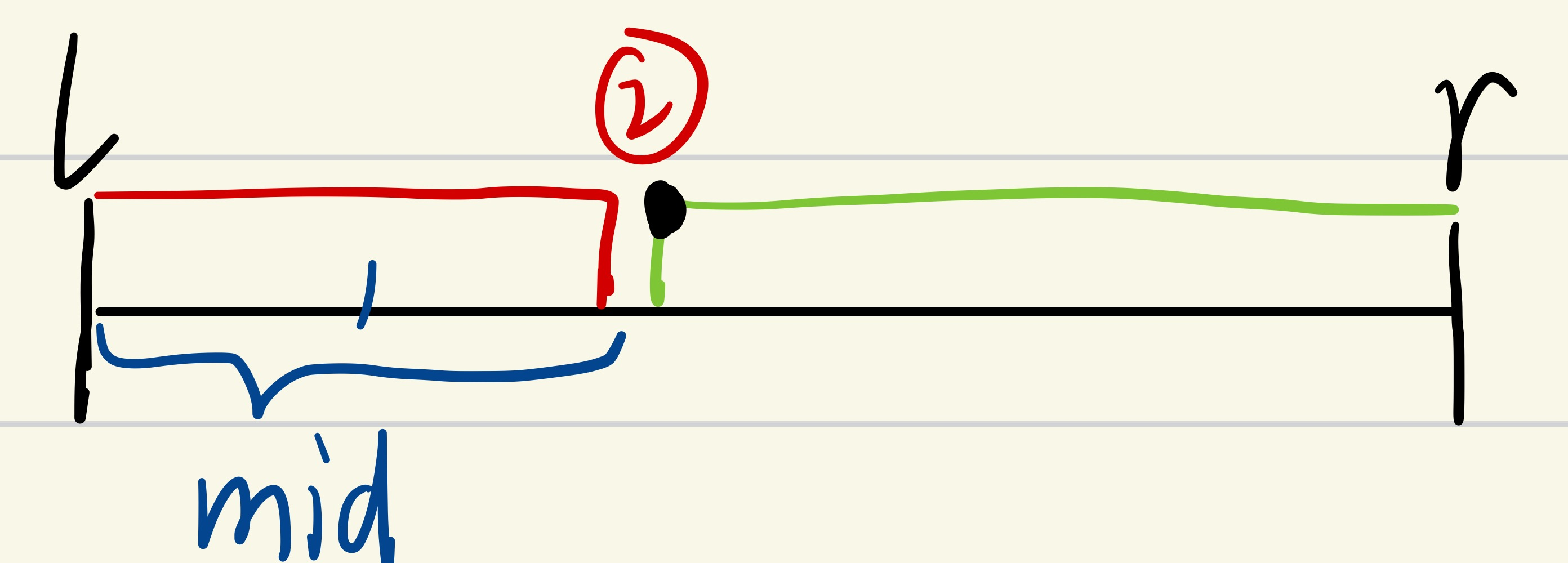 // 区间[l, r]被划分成[l, mid - 1]和[mid, r]时使用: