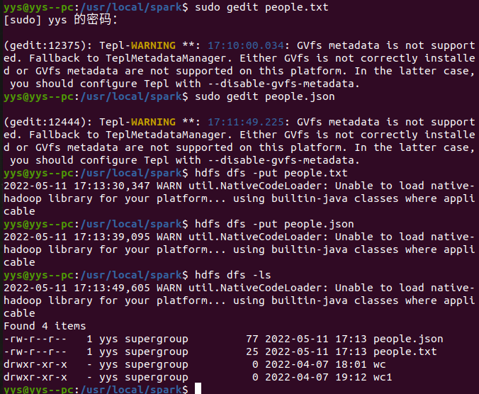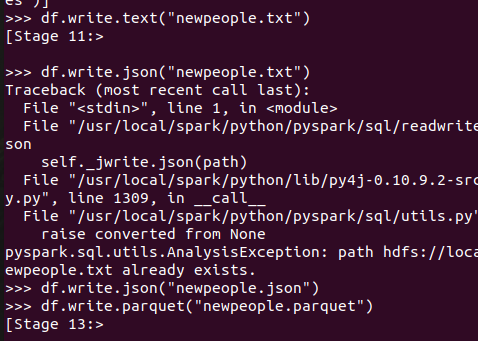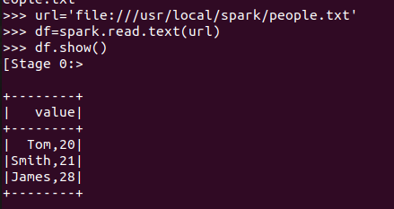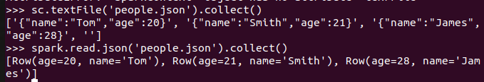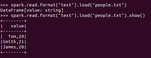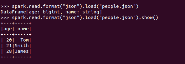 spark.sql执行SQL语句 spark.sql('select name from people').show()