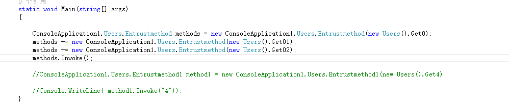 ConsoleApplication1.Users.Entrustmethod methods = new ConsoleApplication1.Users.Entrustmethod(new Users().Get0);