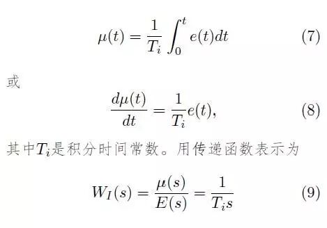 积分控制作用是执行机构的位移量的变化速度与偏差信号成比例的作用,它的动态方程式为