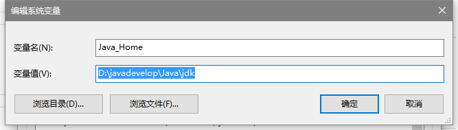 二、新建-变量名“Java_Home" -数值”D:\javadevelop\Java\jdk“