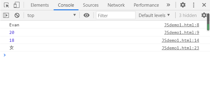 7 user1 = {name:"Evan",age:20}; //第一种方式(里面是键值对)