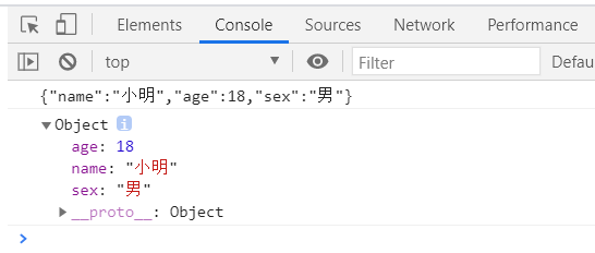 除此之外,js对象还可以转换成json字符串,来看看代码: