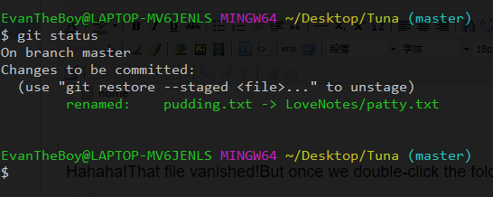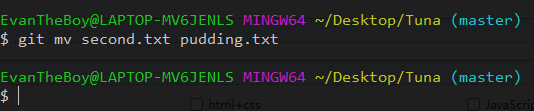 So now we should learn how to rename a file.Actually it's pretty easy if you just do it through your desktop,but it could be more confusing with git.Let's see how that works: