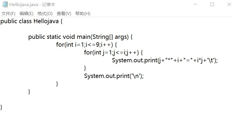 我的第一个Java程序,哈哈,没错就是乘法口诀表了,就决定是你了。