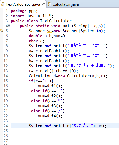 从键盘输入两个操作数和一个操作符,计算之后,输出运算结果。
