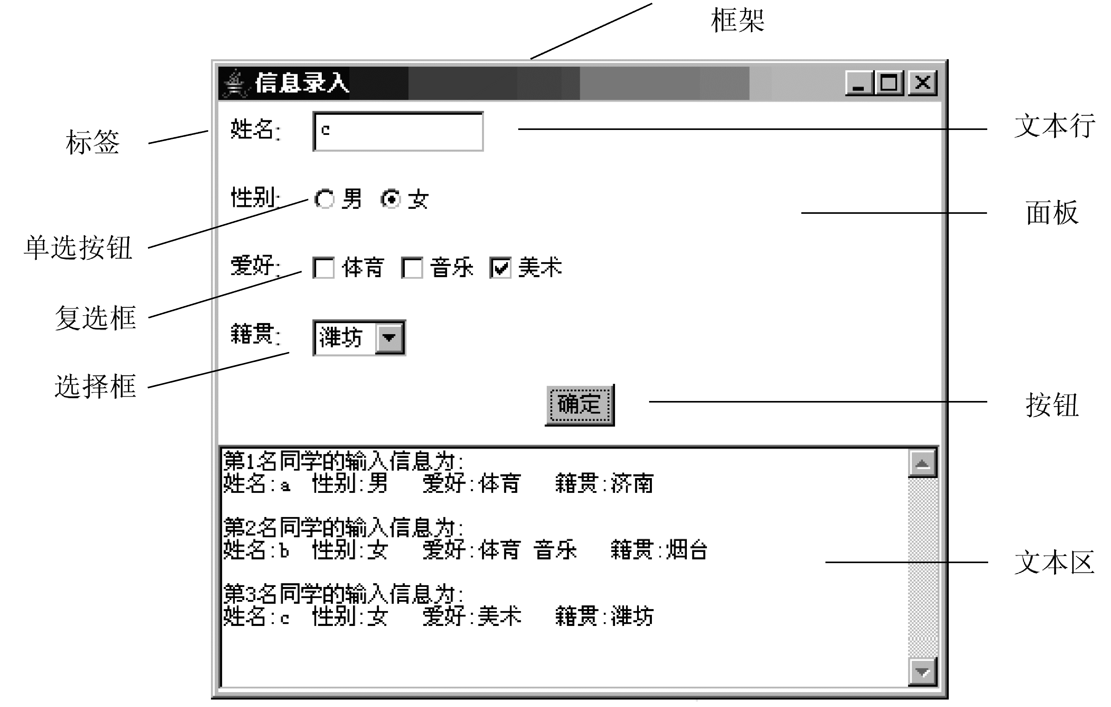 ta.append("第"+i+"名同学的输入信息为:\n");
