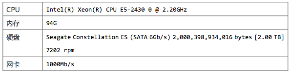 服务端为单机部署,机器配置如下: