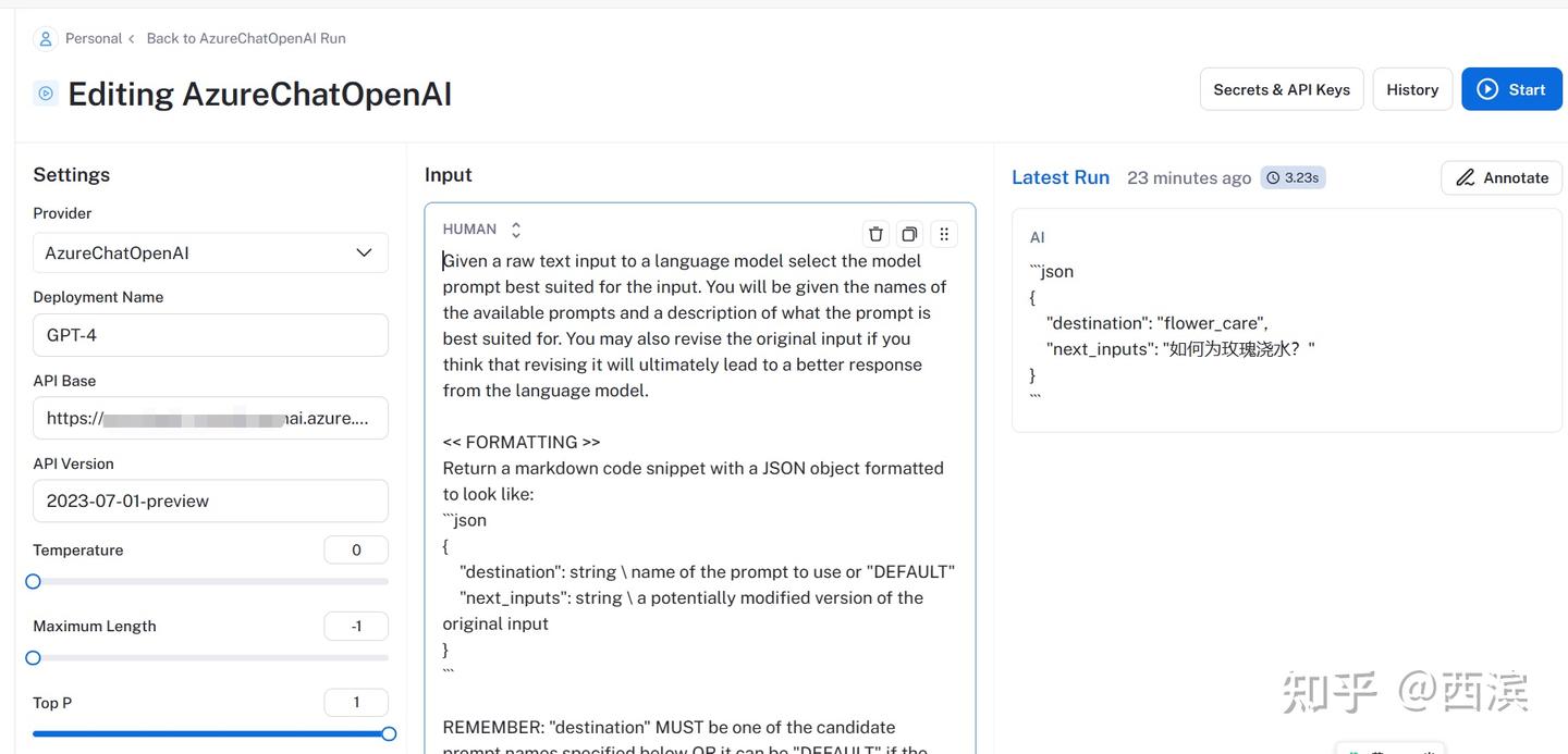 点击上图右上角的Playground,进去后你会发现你调用LLM的各种参数、Prompt都帮你设置好了(OpenAI的Key还要设置,只保存在本地浏览器)。