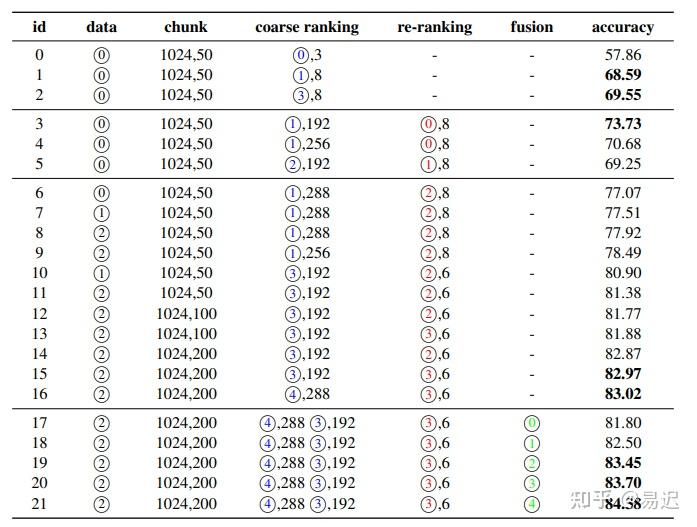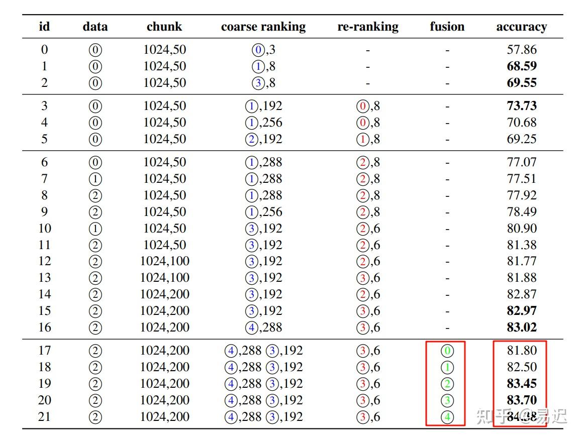 可以关注 re-ranking 列,其中使用的模型编号如下所示: