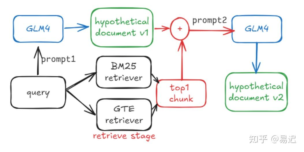 - 设计了一个优化版本的 HyDE, 这个从描述来看还是比较有意思的。具体流程如下所示: