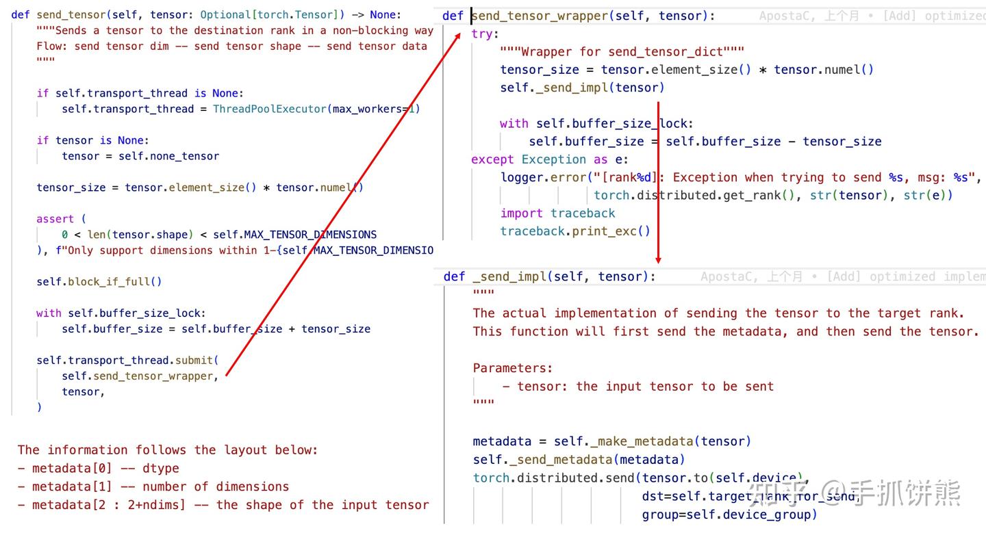 - send_metadata主要记录数据类型、数据维度,以及需要发送tensor的shape,这个很好理解,prefill作为发送端是知道这些信息的,但是decode作为接受端你怎么知道这些信息呢?那就是先接受一些metadata数据,以确定接下来接收什么样的shape的数据。