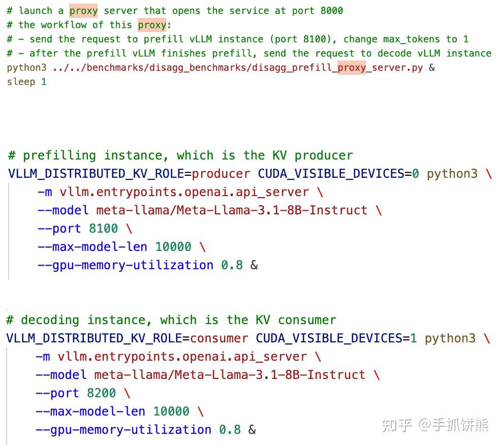 我们看到首先启动了3个进程,然后curl即可,第一个进程是一个叫proxy的进行,后面2个进程分别是vLLM的producer和consumer进程。