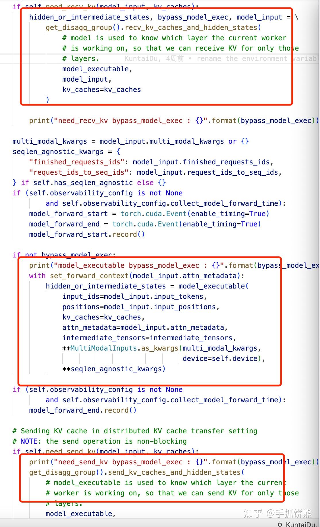 vLLM进程会根据自己是prefill还是decode掉用KV_transfer_agent的不同方法,如果是prefill,则在模型执行后执行send_kv_caches_and_hidden_states,如果是decode阶段,则在模型执行前调用recv_kv_caches_and_hidden_states。