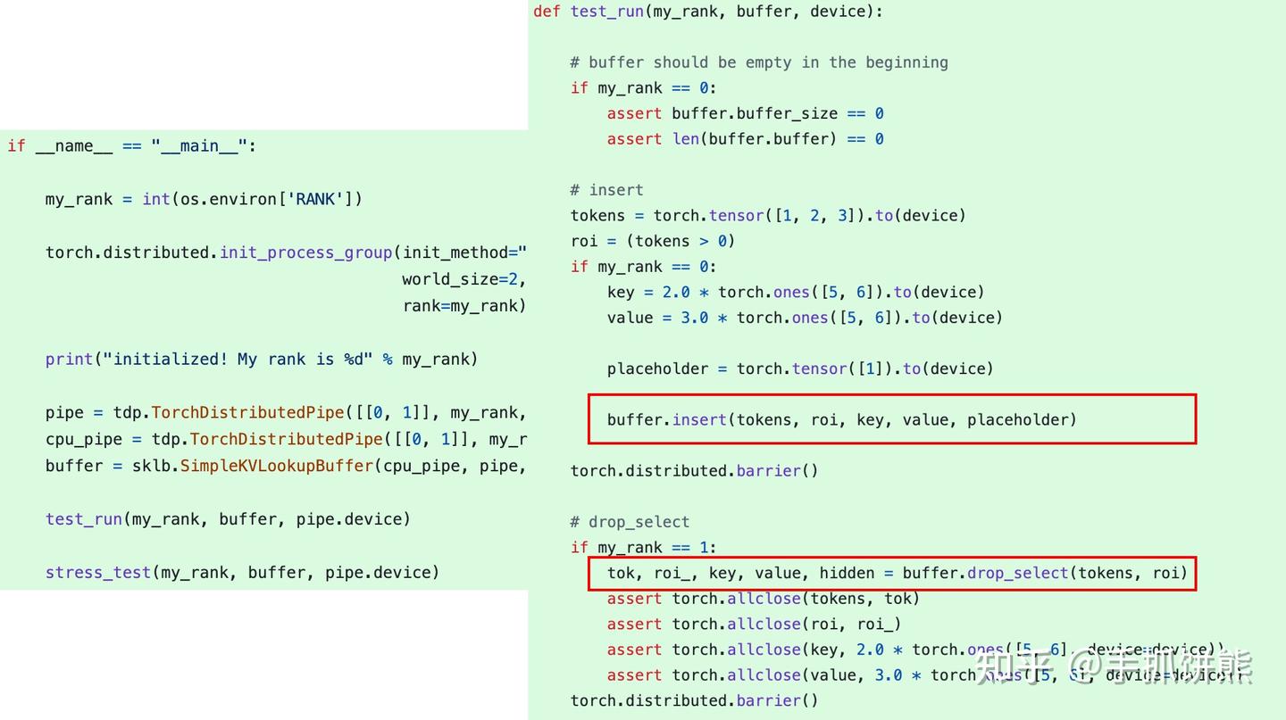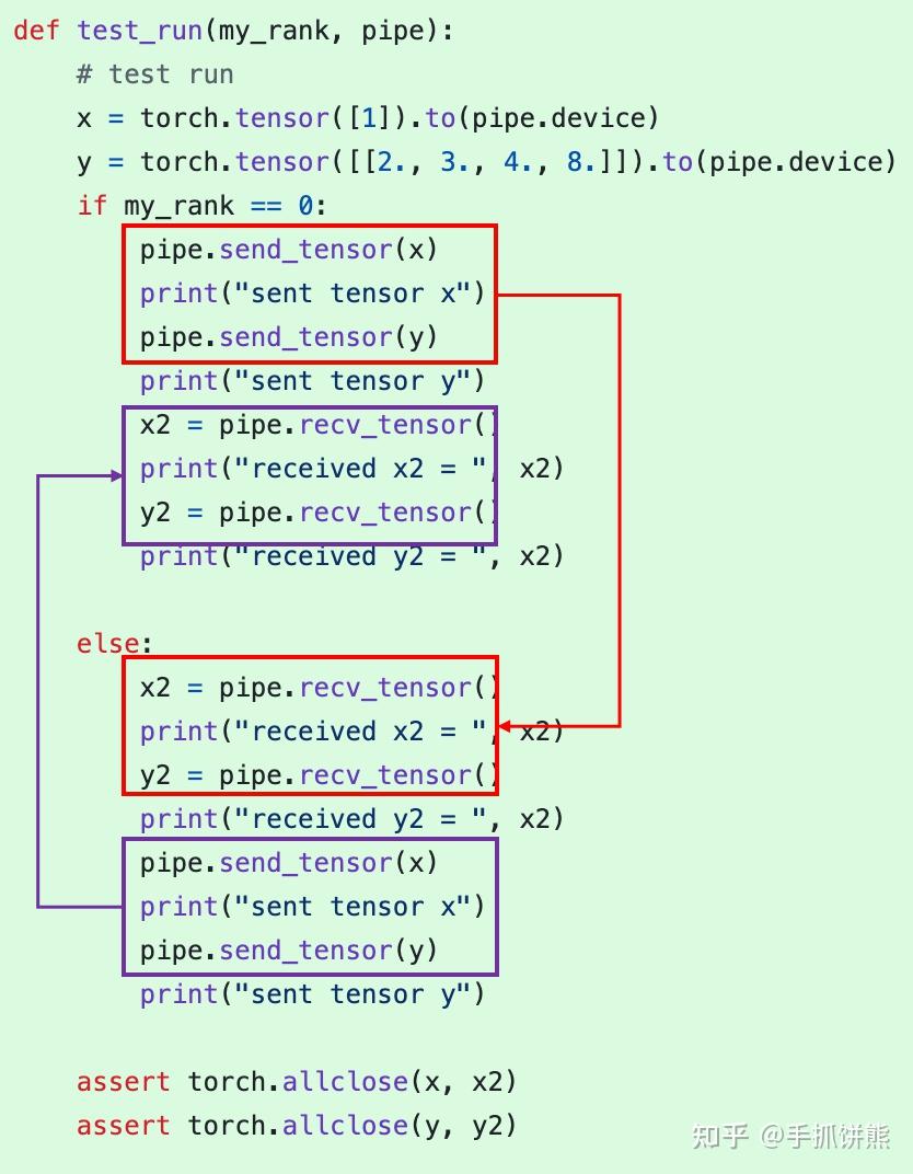 上图代码是kv pipe的单元测试,有2个进程,分别是rank 0 和rank 1,我们可以看到,rank 0 的发送必有rank 1的接收,卧龙凤雏一定是成对出现的。