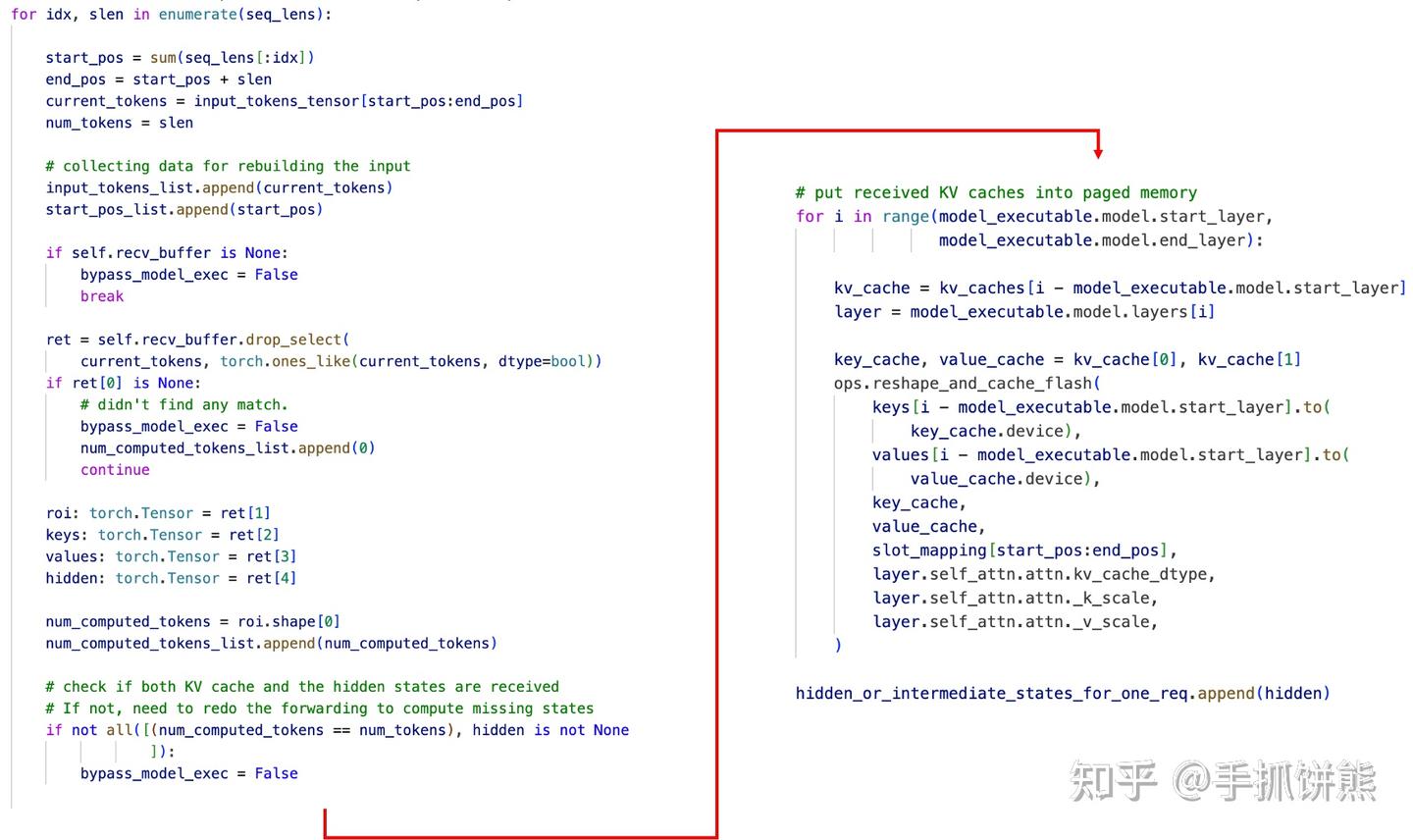 左边是接收kv cache、右边是保存kv cache,以便后续pageattention使用。