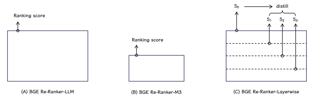 BGE Re-Ranker v2-LLM(如图2A):基于 MiniCPM-2B,Gemma-2B等性能卓越的轻量化大语言模型。