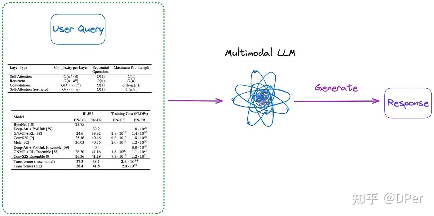 也有一些算法不需要对表进行解析,比如可以将相关的 PDF 页面(图像)和用户查询发送到 VQA 模型(如 DAN)或者多模态 LLM(如 GPT-4V),即可返回答案,如下图所示: