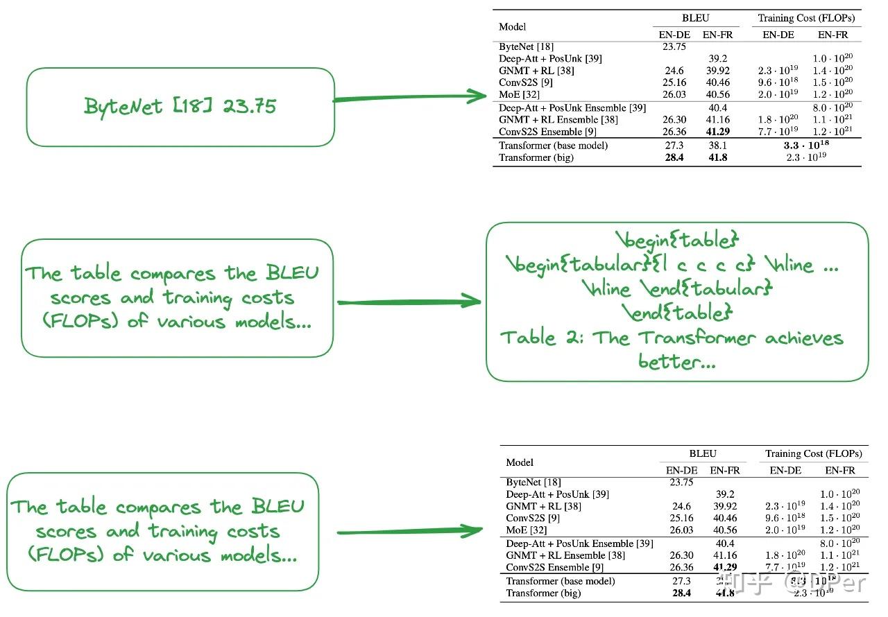 Nougat 解析公式表格的能力令人印象深刻,也能对表格标题进行关联(解析出来的表格式 LaTeX 格式),比如下面这个例子: