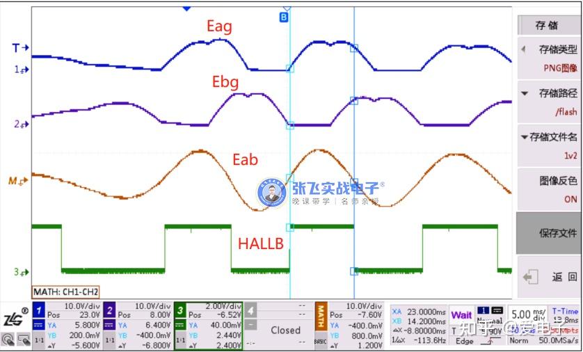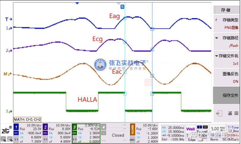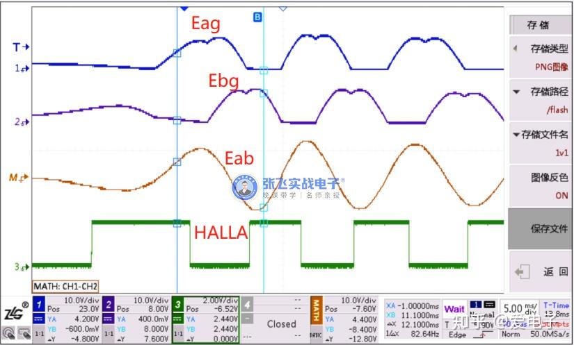 从图三来看,HALLB的沿跳变已经跟Eab的过零点对应上了,所以第一步测试,可以得出Eab跟HALLB的波形关系。