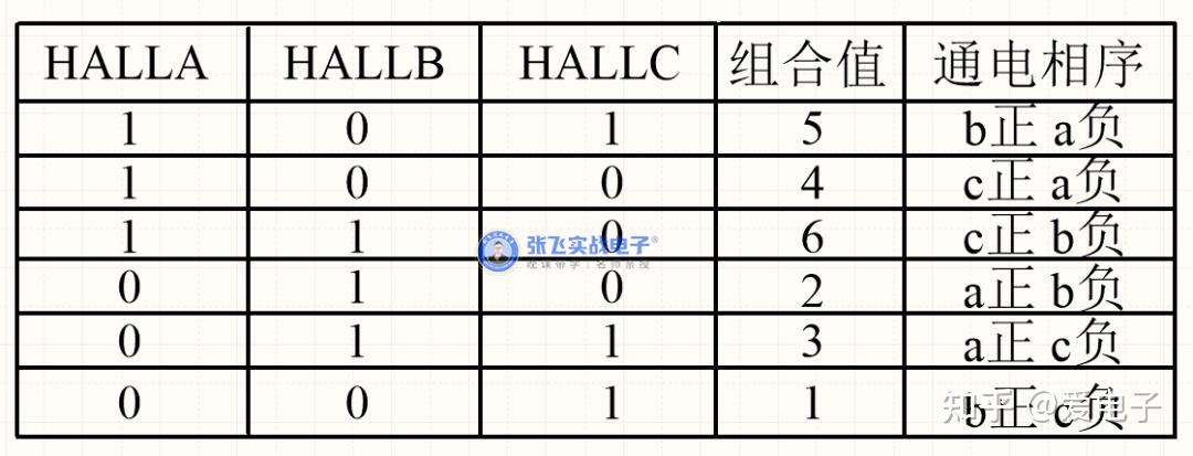最终,通过相反电动势与相电压波形同向的原理,则就能确定出霍尔信号与绕组通电的准确相序,它们的关系通过下表一列出: