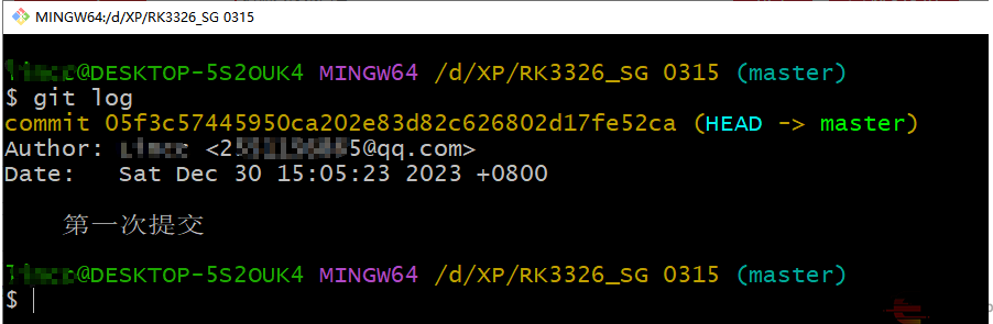 然后git log可以看到这次提交的记录。
