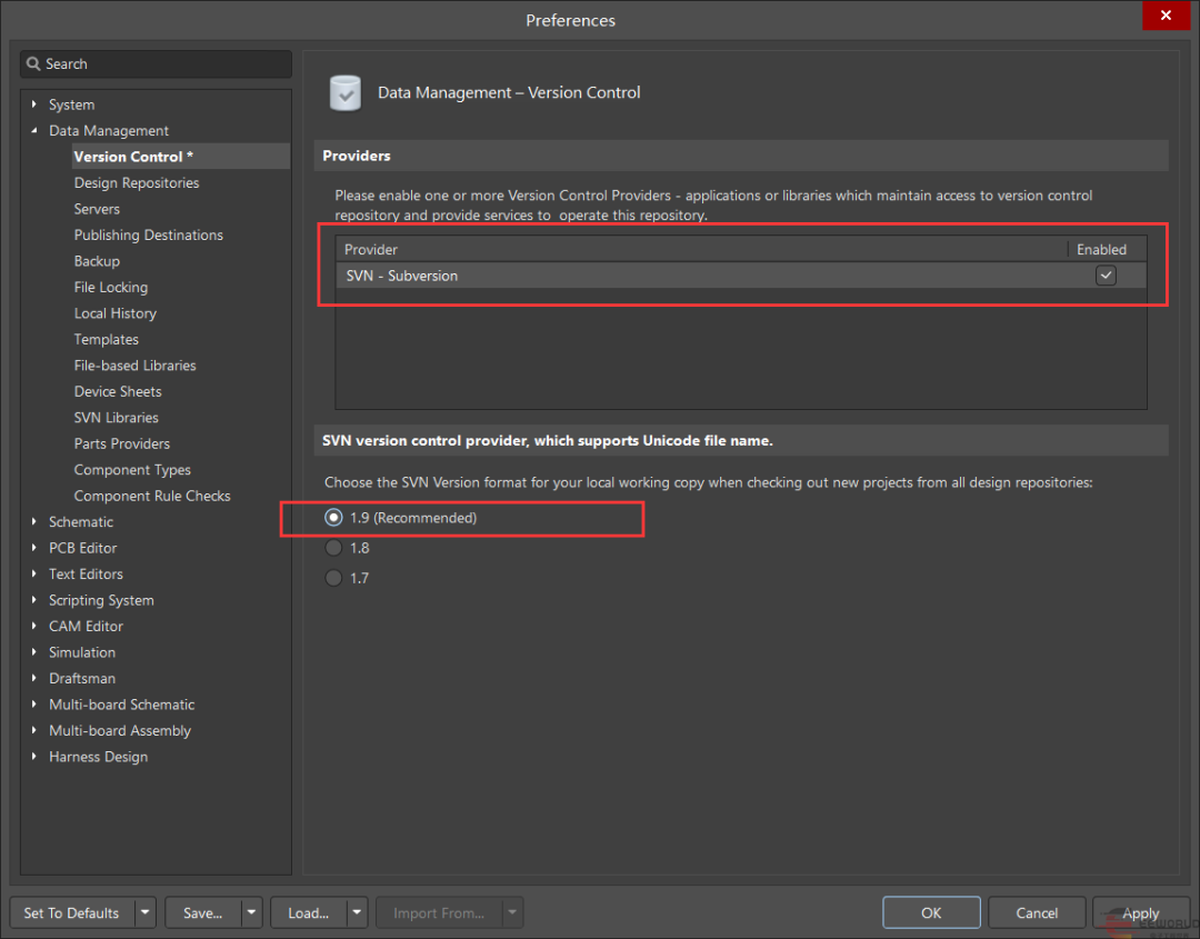江湖传闻SVN管理二进制文件比Git更有优势,只能说是AD支持Git,但是AD更偏向SVN。因为SVN做二进制文件的版本管理会更节省硬盘空间。