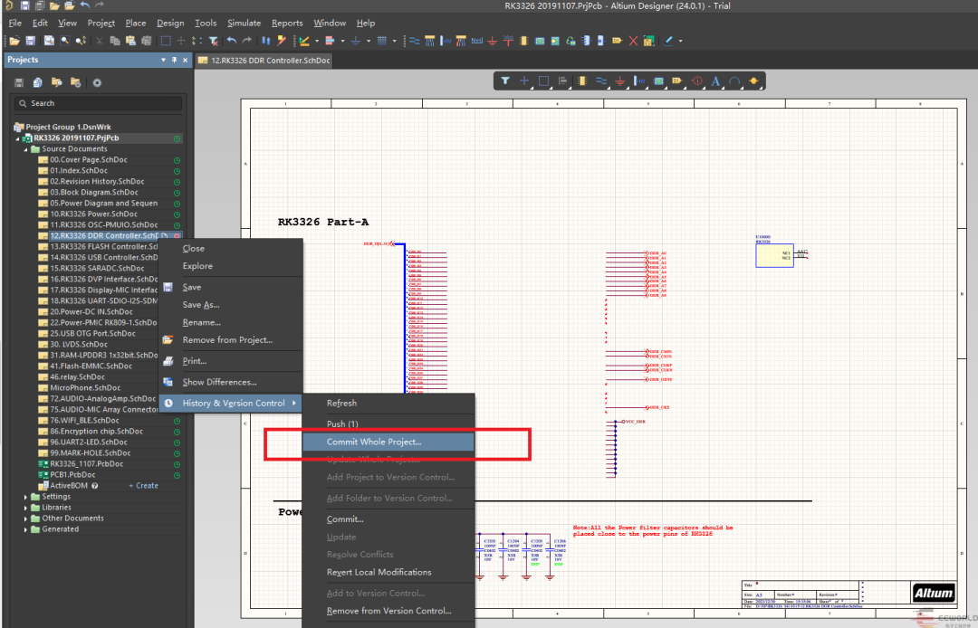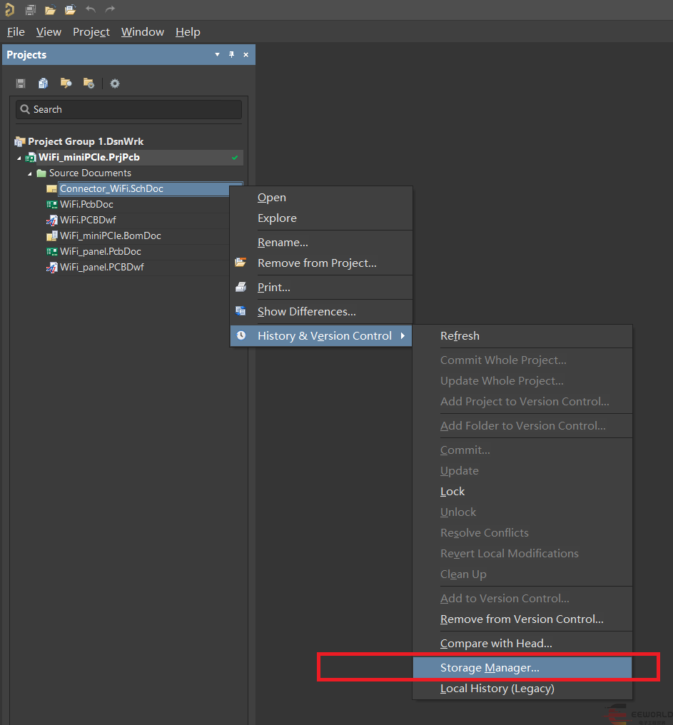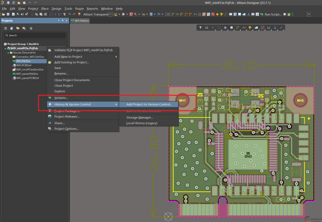 2. 先打开一个AD工程,在工程文件上右键选择History,然后Add Project to Version Control...
