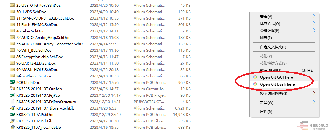 4. 在AD工程目录里打开Git 命令行, 执行git init命令,这个步骤是将项目目录内初始化一个git目录、首次将项目文件加入版本管理才需要做