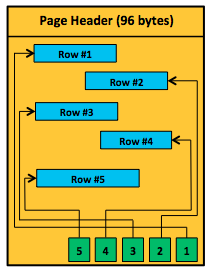 The page header is always 96 bytes long in SQL Server (independent of the type of the page), and stores general information like the Page ID, Object ID, etc. The most interesting part of the data page is the payload area, because our records are stored in that area. SQL Server gives you from the 8192 bytes (8kb), 8096 bytes for the payload section. Therefore it's an easy task to calculate how many rows for a given table fit on a page - just divide 8096 by the record size (incl. the internal overhead of at least 7 bytes). If you round down the result, you have the number of records you can store on a data page.