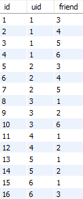 在上一篇文章结束后,数据库中添加两张表,一张用于表明用户间的好友关系: