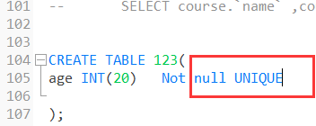 UNIQUE 唯一约束 ,意味这个值是不可以重复的,也是不可以为空的。。。