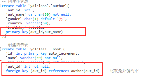 - 一个字段名只能在联合主键字段表中出现一次。