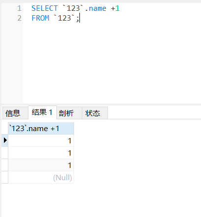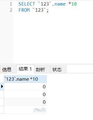 -- 查询给所有员工工资加1000的结果 select id,name,sal+1000 from employee; select `id`,`name`,`age`*10 from student;
