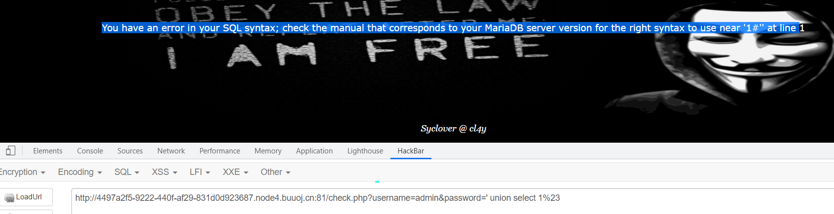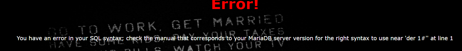 结果如下,发现还是出现了sql语法错误,并且回显的内容是der 1#