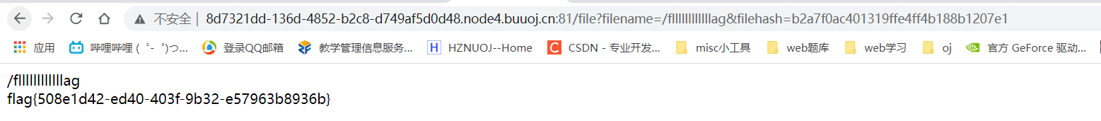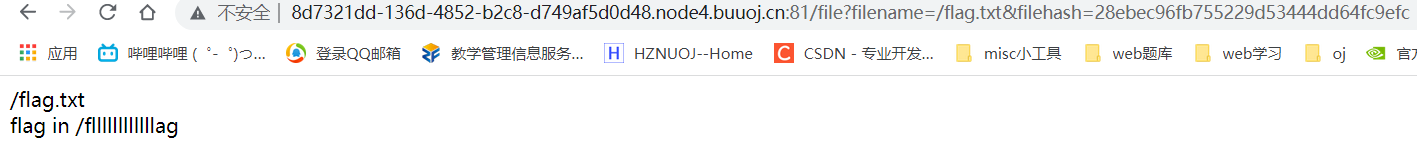 然后改url为file?filename=/fllllllllllllag&filehash=b2a7f0ac401319ffe4ff4b188b1207e1得到答案