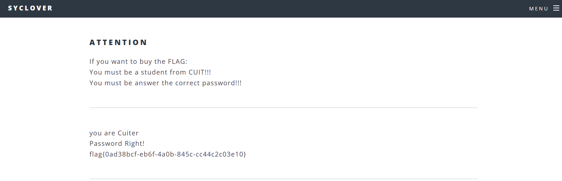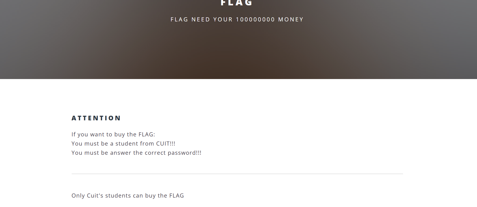 提示我们如果想要得到flag必须要满足三个条件,足够的money,还有必须是cuit(成电)的学生,还有必须要正确的密码。