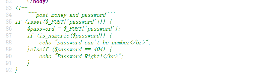 给了一串代码,这个代码使得密码正确很明显就是利用弱判断来过就是password等于404加上任意的字符