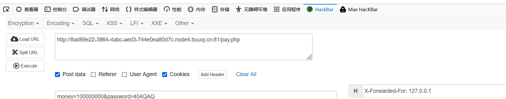 于是我尝试以下操作:post money 和 password同时,改一下cookie
