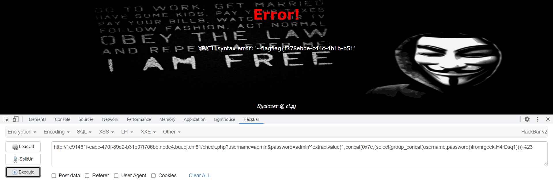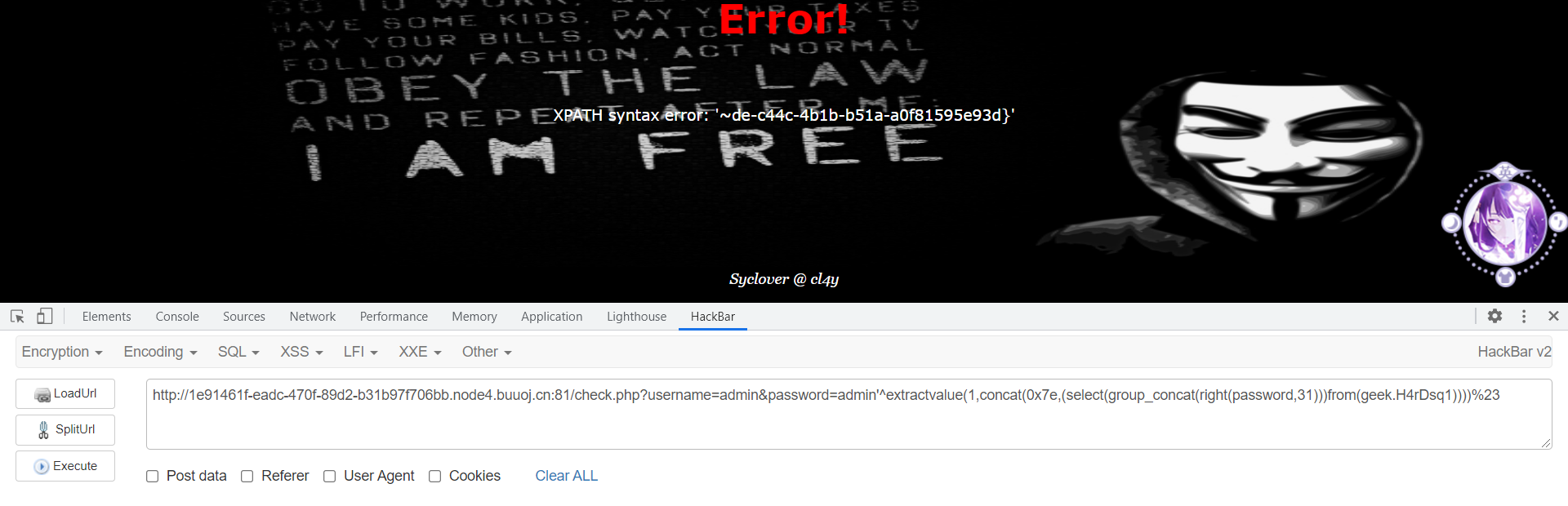 于是想起来还有报错注入,于是查资料并且采用报错注入