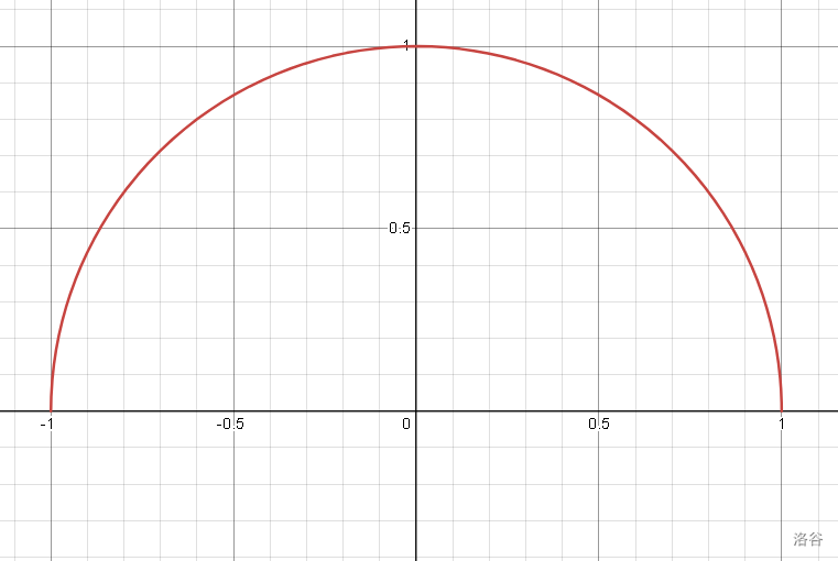而 \(\int_{a}^{b} f(x)dx\) 代表 \(x\) 从 \(a\) 到 \(b\) 函数 \(f(x)\) 与 \(x\) 轴的面积之和,由于对单位圆积分显然为 \(0\) ,所以需要稍微变形为 \(f(x)=\sqrt{1-x^2}\)。