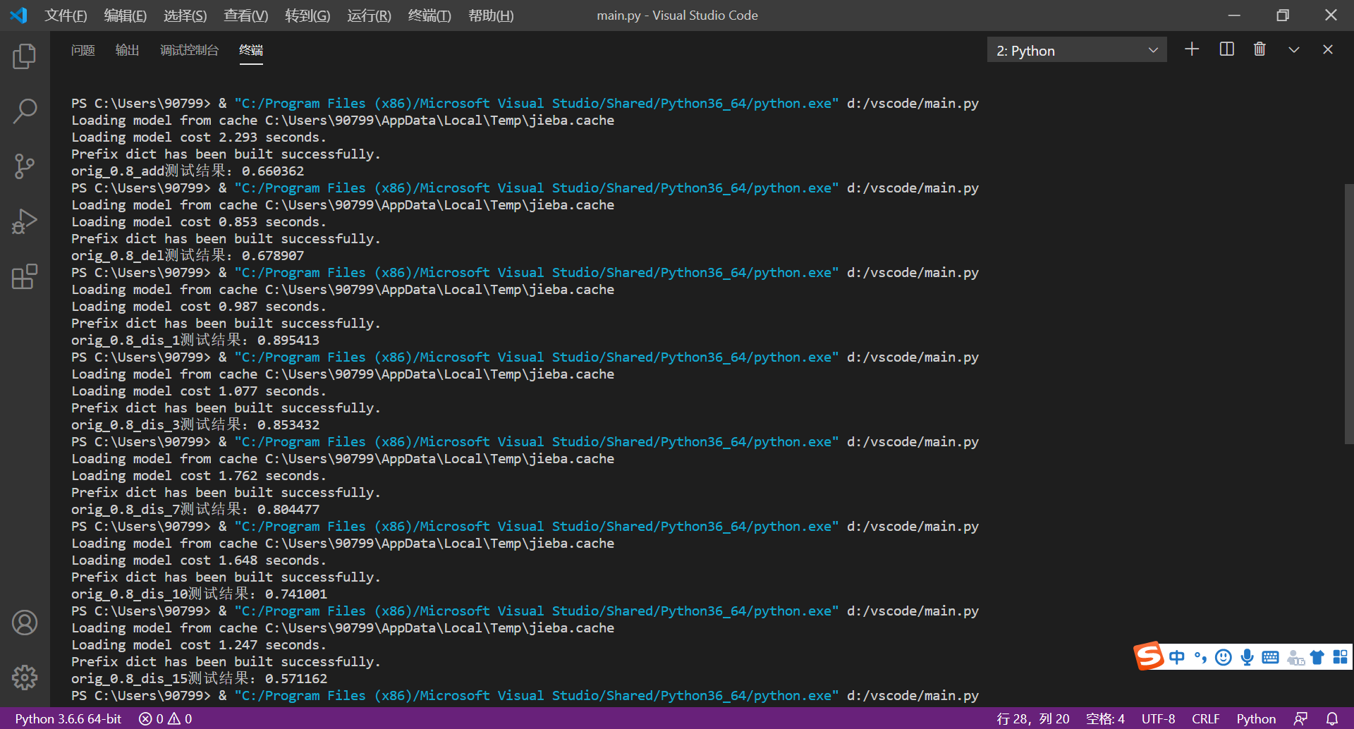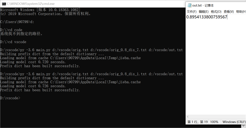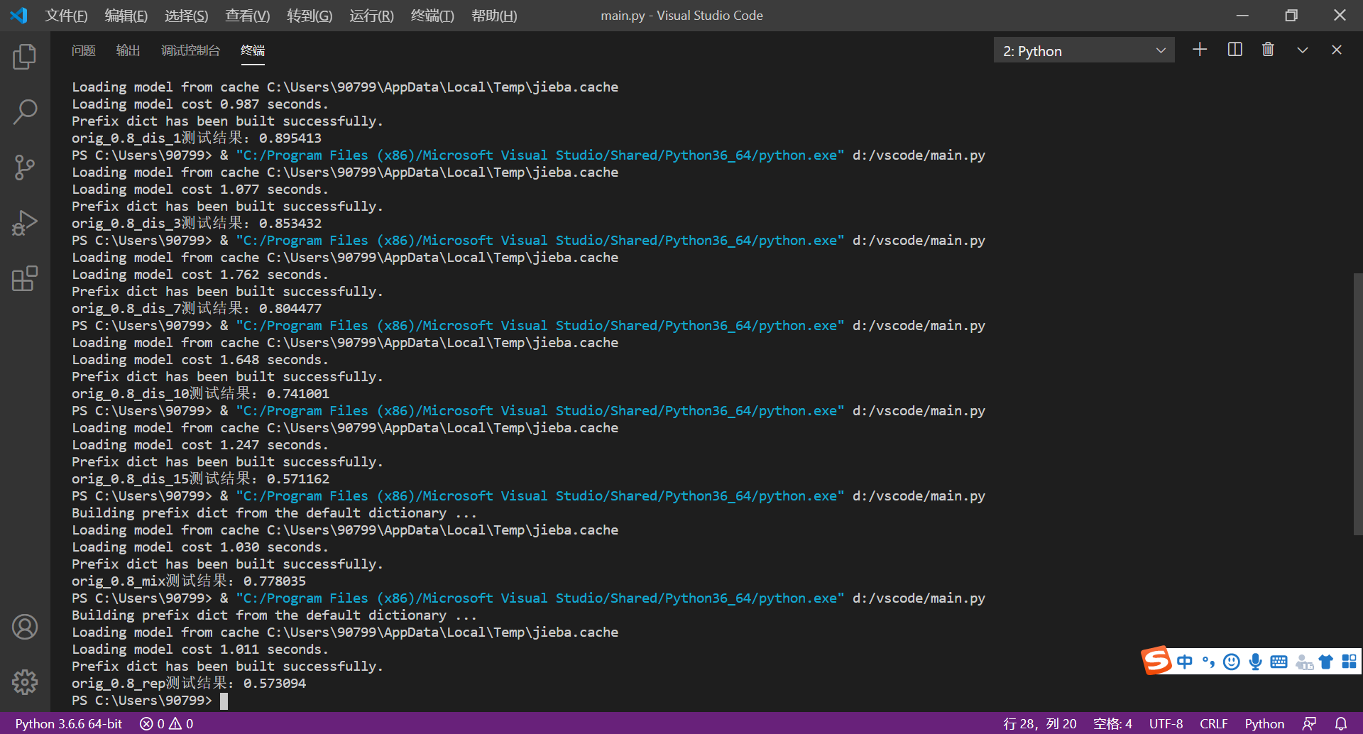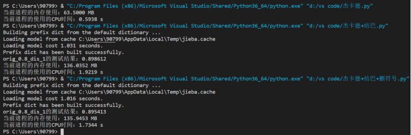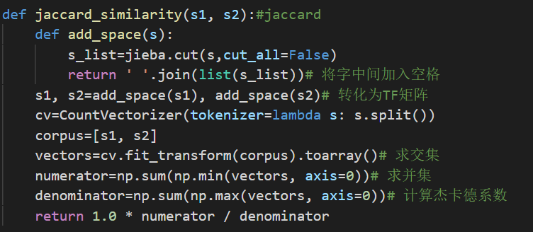 随后在****中学习到了jieba(结巴)库具有分词功能,尝试与杰卡德算法合体,发现数据还是相对理想的: