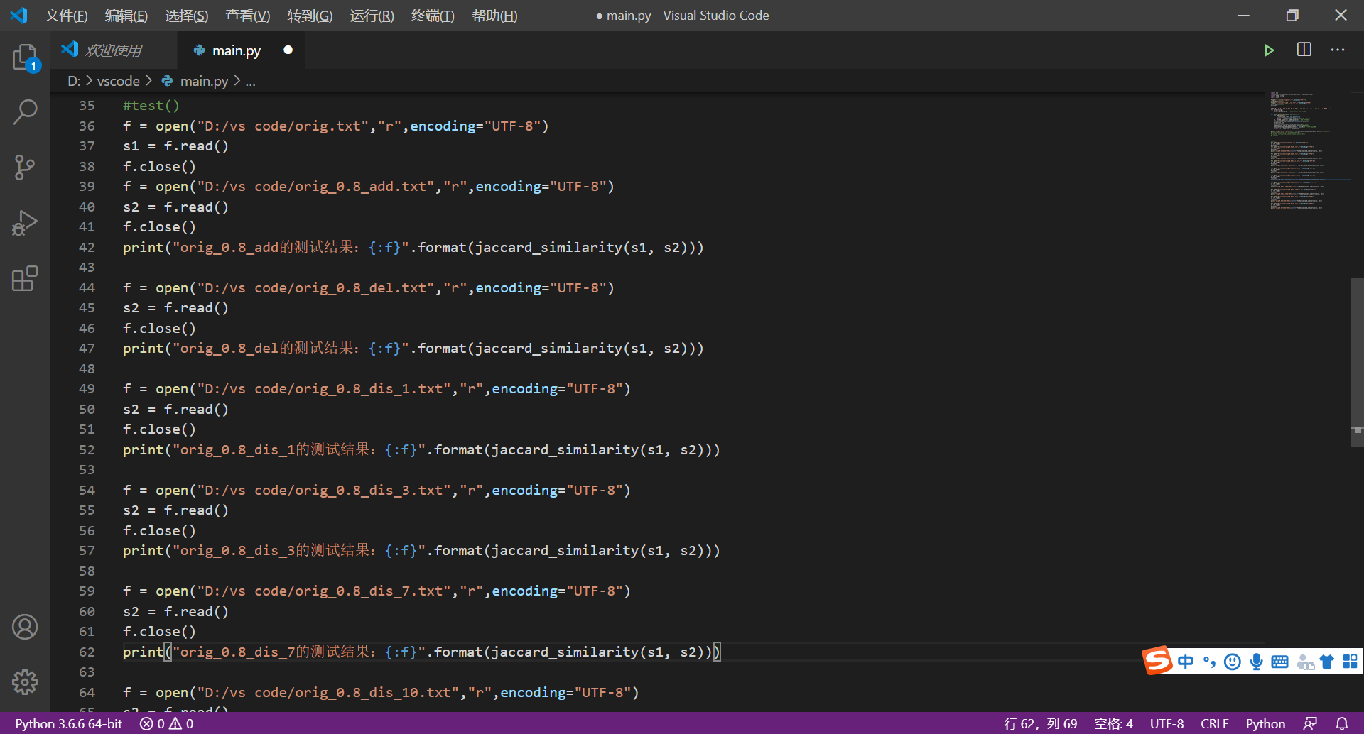 再次打开****又看到了杰卡德算法,便又直接引用下来发现还是与测试组数据相差甚远:
