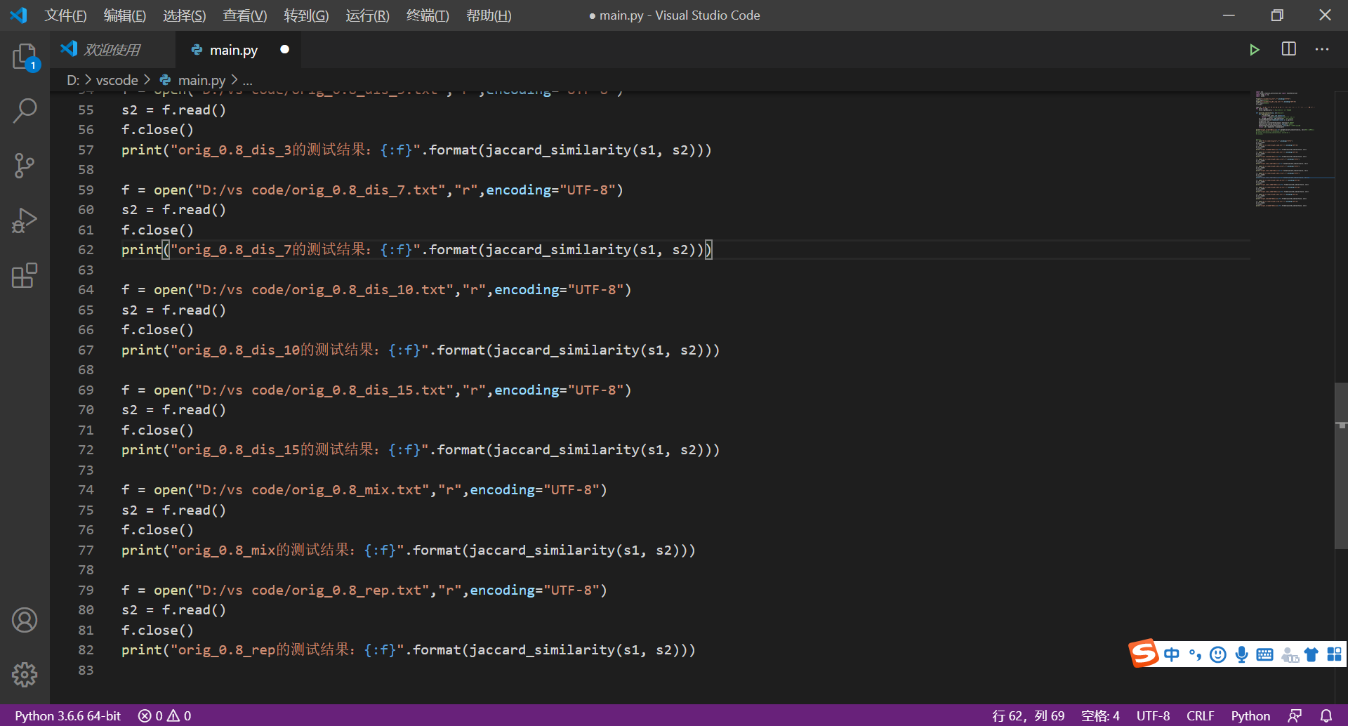 随后我选择了dis_1测试组,对比杰卡德,杰卡德+结巴,杰卡德+结巴+删符号: