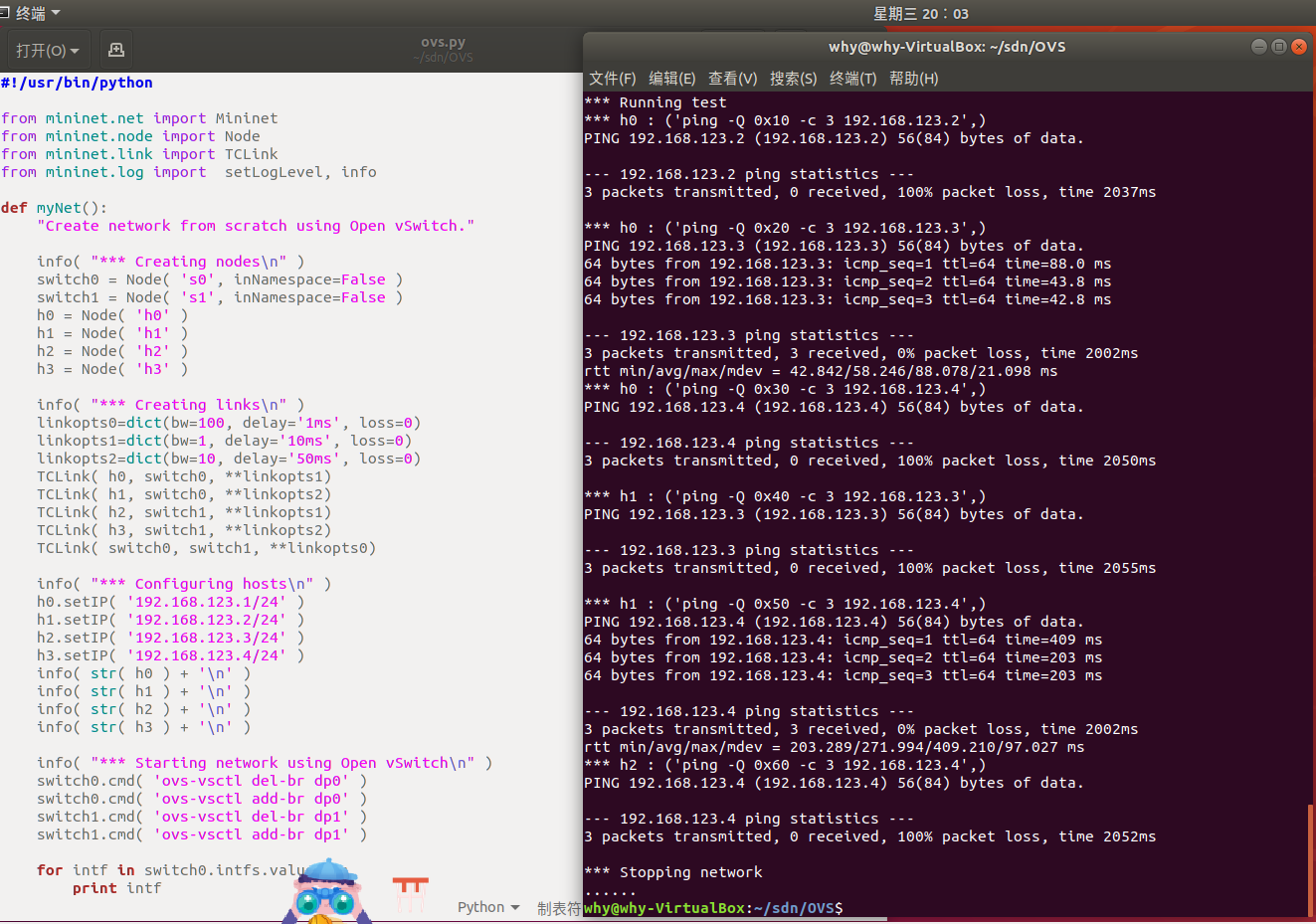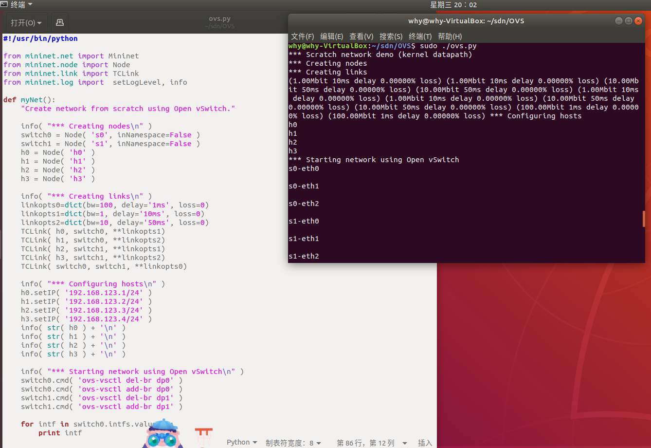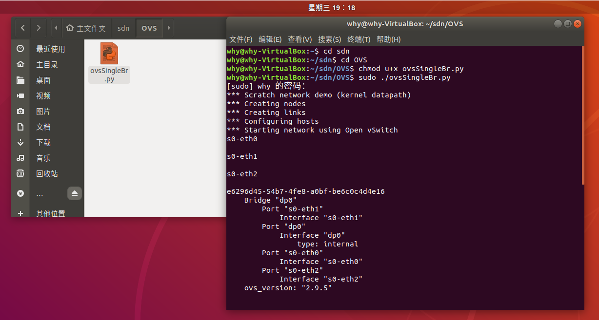 Mininet 安装之后,会连带安装 Open vSwitch,可以直接通过 Python 脚本调用Open vSwitch 命令,从而直接控制 Open vSwitch,通过实验了解调用控制的方法。