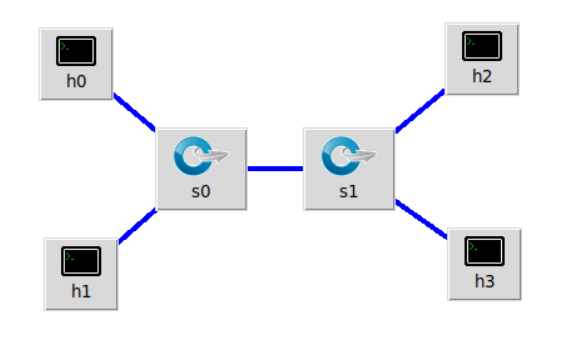 学习 ovsSingleBr.py 和 ovsMultiBr.py,在下图拓扑中实现一个 VLAN。上述代码将 h0 和 h2 划分在 VLAN 0 中,h1 和 h3 划分在 VLAN 1 中,由于拓扑没有控制器,并且初始化时删除了交换机中的所有流表,因此除非下发流表,否则主机之间网络无法连通。请尝试修改代码,利用 ovs 命令直接下发 VLAN 设置的流表项,最终测试 h0 和 h2 互通,h1 和 h3 互通,其余主机均不通,结果如下图。