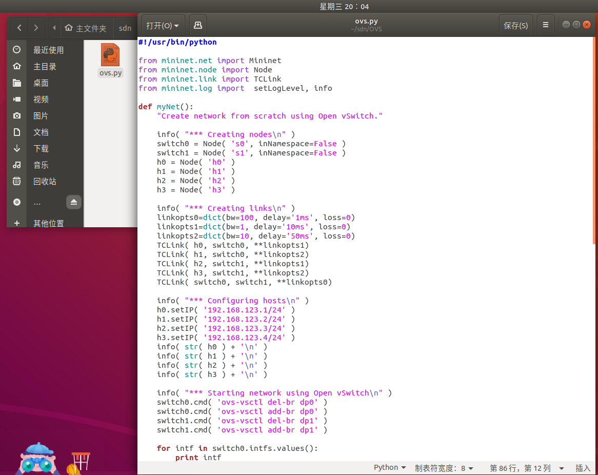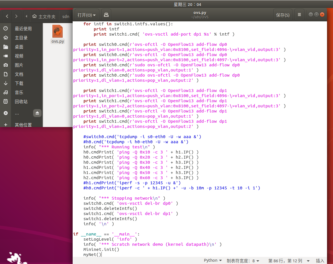 (2)创建 ovsMultiBr.py 脚本并添加内容,代码参考 SDNLAB